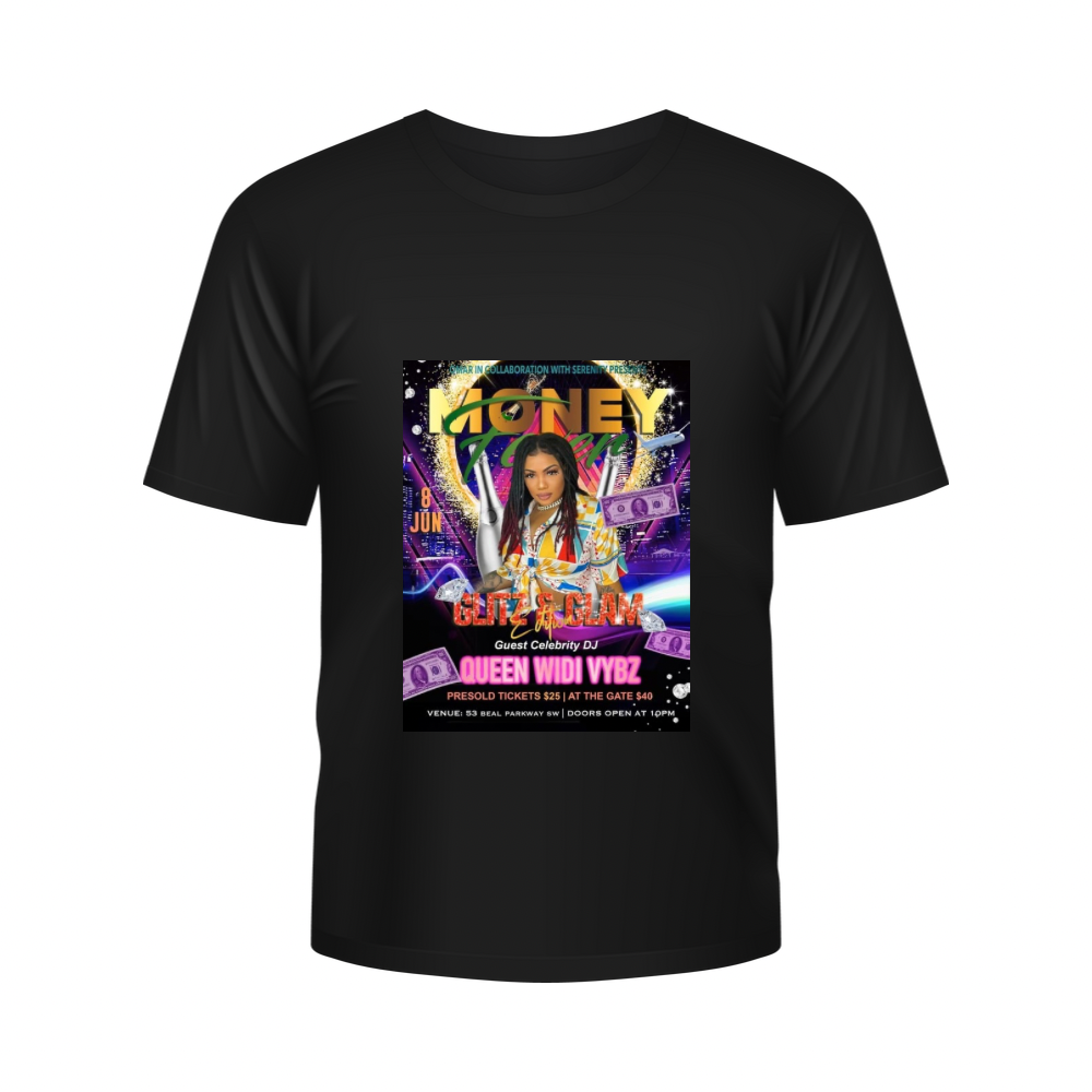 This t-shirt design includes the actual flyer from Queen Widi Vybz's 1st official booking (JUNE 8 - Fort Walton Beach, FL)